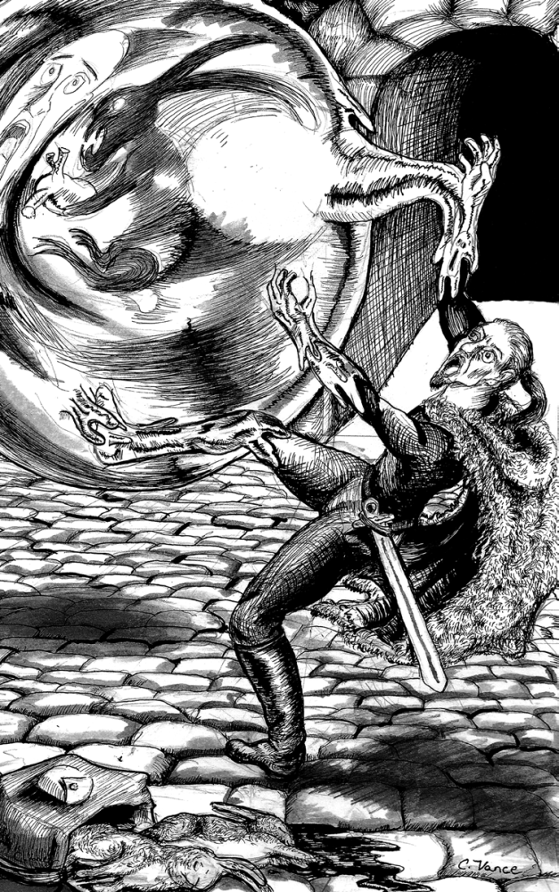 “The horror! I remember the feeling as it passed over me—infinite cold, my appendages splayed out in all directions—then nothing! The next thing I knew I was standing outside the brothel my party had chosen to take up residence in—three weeks later!”